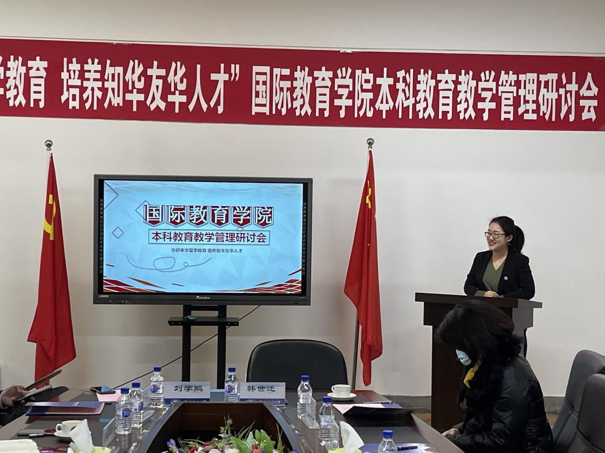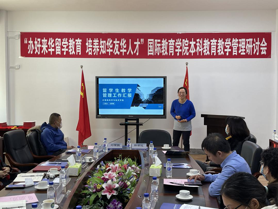 来自各个二级学院的留学生教学秘书代表也在会上发言。王翠青老师(计算机科学与技术学院)做了留学生教学管理工作汇报,介绍了计算机科学与技术学院在留学生教学与管理方面的经验,同时也提出了对今后工作的建议。