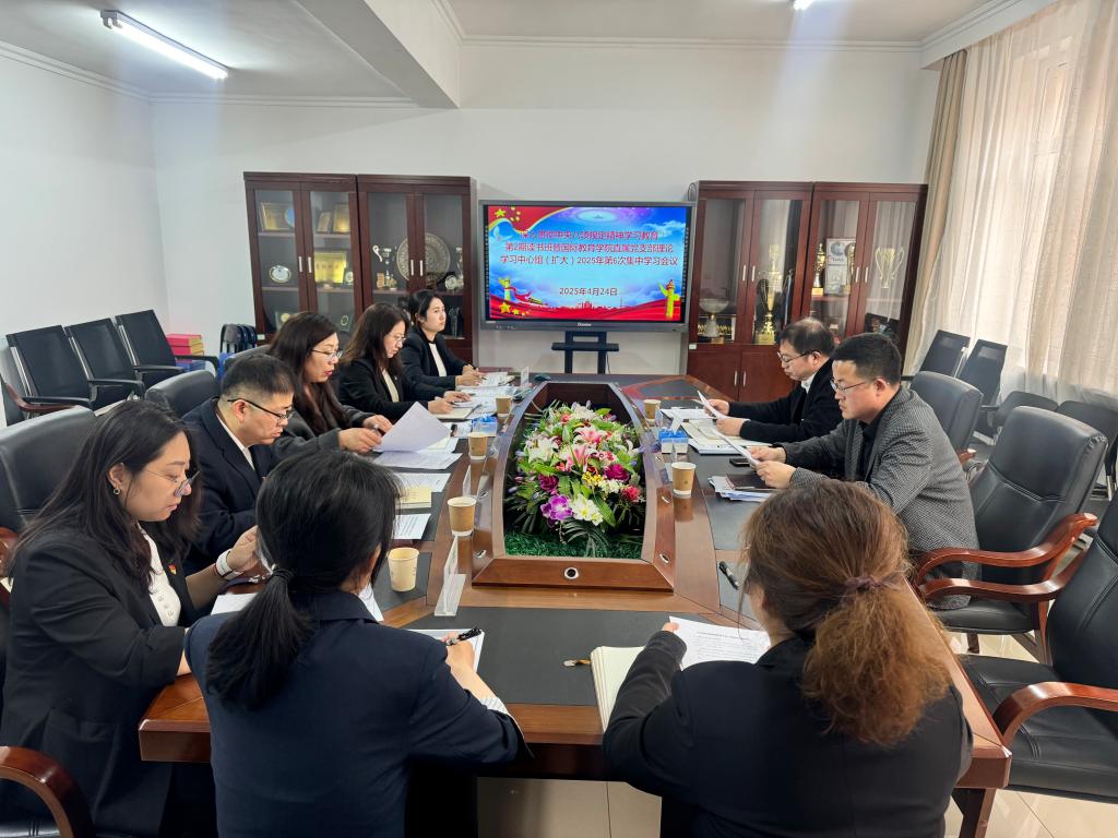 4月24日,国际教育学院直属党支部深入贯彻中央八项规定精神学习教育第2期读书班暨理论学习中心组(扩大)2025年度第6次集中学习会议在学院会议室举行。学院全体在校党员参加学习,国际教育学院直属党支部书记、院长王春雨主持会议。校党委常委、副校长王树荣和校党委常委、宣传部部长刘飞列席旁听。