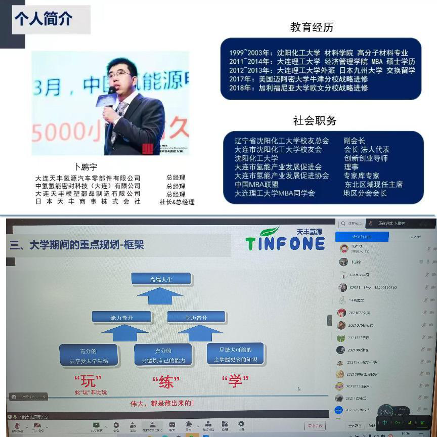 5月10日邀请材料学院1999届毕业生卜鹏宇学长以线上的形式为大家做经验分享讲座。卜学长从事业发展和个人成长两方面展开,建议同学们平时多了解就业相关职位的信息,提升对行业的认识。告诉学生们应培养良好的习惯,存有高远的目标和追求,不断探索和学习,注重实践和人际交流,勇于寻找目标和机会突破自己,在好习惯之下追求卓越;不因条件艰苦与经济效益而忘记自己的职责,保持对工作的热忱;保有乐观积极的心态,敢于奋斗,对社会乐于奉献和回报。