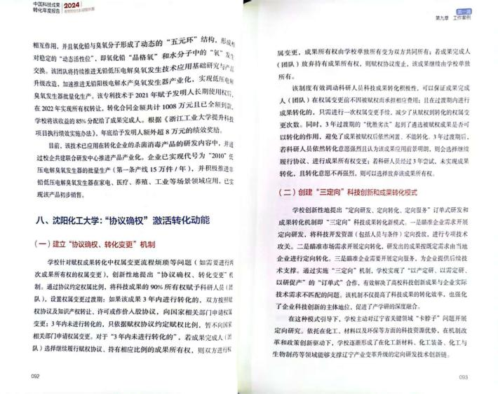 近日,辽宁省科技厅下发“关于全面实施职务科技成果赋权改革的通知”,在全省推广万象城赋权试点工作经验。同时,万象城在赋权试点工作中提出的“协议确权”机制入选《中国科技成果转化年度报告2024》工作案例。这是继万象城提出的“三定向”科技创新与成果转化机制在全国推广后,又一获得推广的学校科技体制改革案例。