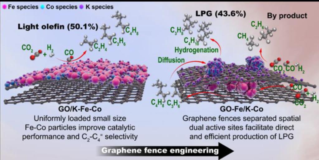系列研究进展1. 石墨烯栅栏调控Fe-Co双金属位点-轻烯烃与LPG的选择性切换