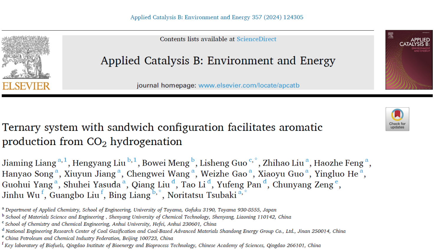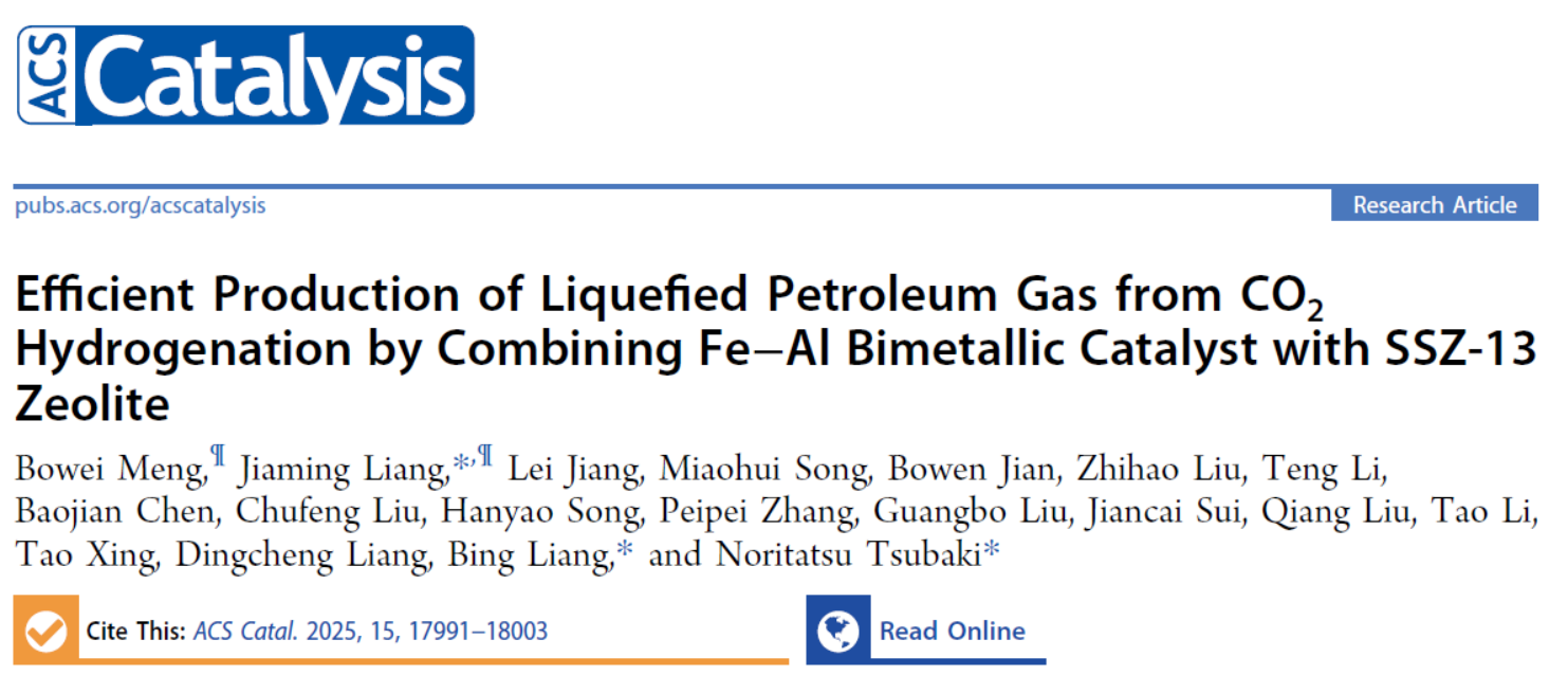 在“双碳”战略背景下,CO2高效转化为高值烃类(液化石油气、芳烃、轻烯烃等)是实现碳循环的关键路径,但其核心挑战在于突破Anderson-Schulz-Flory(ASF)分布限制、精准调控产物选择性与提升转化效率。万象城体育awcsport梁兵教授团队联合日本富山大学椿范立院士团队,于2024-2025年开展系列研究,通过活性位点空间调控、界面电子结构优化、载体/沸石协同设计三大核心策略,在Nature Communications、Applied Catalysis B: Environment and Energy、ACS Catalysis等国际期刊发表4篇研究性论文,先后实现CO2向低碳烯烃/LPG的选择性切换、芳烃的高效合成、甲醇介导的LPG定向转化,最终构建Fe-Al双金属-沸石串联体系,刷新LPG转化效率纪录。系列成果形成“位点调控→产物拓展→效率优化”的完整研究链条,为解决CO2转化的选择性、转化率与稳定性难题提供了多套创新方案。系列成果不仅在学术上丰富了双金属催化、载体工程、沸石筛分的协同理论,更在应用上为工业级CO2加氢制LPG、芳烃等技术提供了可落地的催化剂体系与工艺参数。