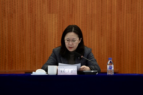 副校长笪可宁宣读2021年度学校单位和部门绩效考核、中层领导班子和领导干部考核、党组织书记抓党建述职评议考核结果。