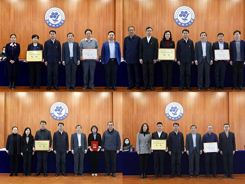 党委书记王强、校长许光文为2021年度学校考核优秀的中层领导班子授牌。