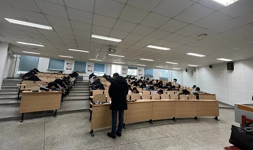 12月27日上午,校长许光文、副校长金志浩再次查看了通明楼、应星楼的有关考场。巡查过程中,校领导对考试组织、考场环境、考试秩序、监考教师履职情况进行了细致检查和询问。对考试工作安排和各教学单位期末考试组织工作给予了肯定,同时要求在加强考试管理力度的同时,将诚信应考的风气延续下去,为同学们营造良好的考试环境,切实为学生创造公平、公正的考试环境。对于考试过程中出现的问题要及时解决并总结经验,落实考试管理责任。