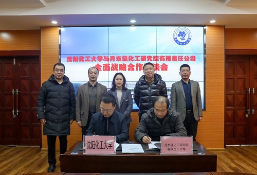 发展规划处处长孙亚光代表学校与丹东轻化工研究院有限公司签署全面战略合作协议