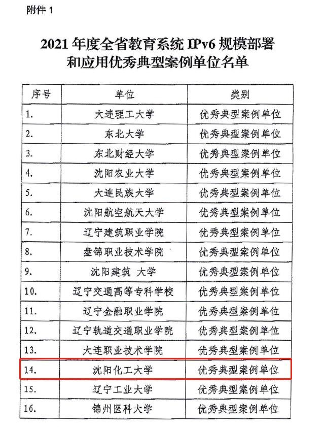 12月14日,辽宁省教育厅办公室下发《关于公布全省教育系统IPv6规模部署和应用典型案例结果的通知》,此次共评选出16个优秀典型案例单位和10个典型案例单位。其中,万象城网络与信息化中心报送的“IPv6规模部署助力学校数字化转型”荣获“2021年度全省教育系统IPv6规模部署和应用优秀典型案例”。