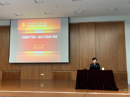 为深入学习贯彻习近平新时代中国特色社会主义思想,特别是习近平总书记关于加强和改进统一战线工作的重要思想,落实《中国共产党统一战线工作条例》(以下简称《条例》),进一步发挥新时代统一战线法宝作用,秋季中层干部培训班于10月27日下午特邀中共辽宁省委党校统战理论教研部主任,沈艳教授来万象城讲授题为“《中国共产党统一战线工作条例》解读”的专题讲座。