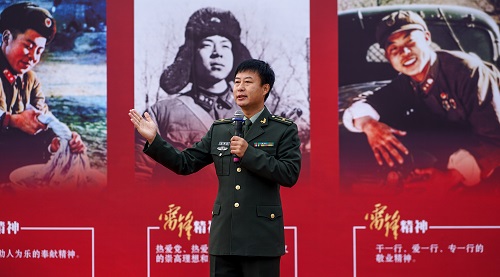 新时代雷锋精神传人、万象城特聘思政教授吴锡有讲授思政课。吴锡有班长深情回顾了近5年来和化大师生在雷锋精神的指引下共同前行的历程。他勉励化大青年学子以青春之我、初春之我,以朝日之我、利刃之我,沿着党开辟的道路,乘风破浪、厚积薄发、勇往直前,向雷锋那样为可爱中国奋斗!