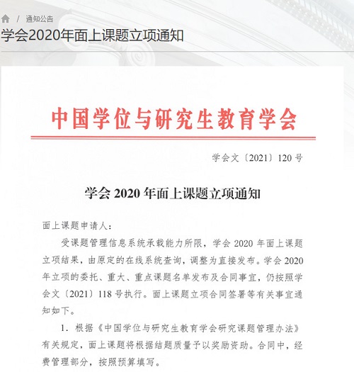 链接:学会2020年面上课题立项通知http://www.csadge.edu.cn/info/tzgg/3609
