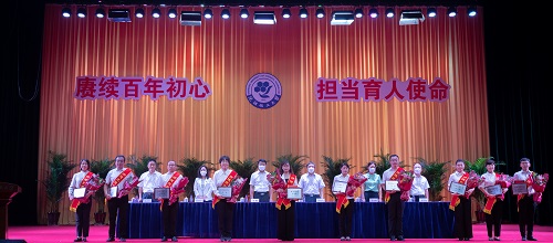 校师德标兵、外国语学院副院长杜璇瑛代表获奖教师和教育工作者发言。她表示,作为有34年教龄的普通教师,切身感受着教师的地位逐步在提高,尊师重教的风气越来越浓厚。她围绕于国,我们是人民教师,担民族复兴使命;于校,我们是化大一份子,负腾飞发展重任;于学生,我们传道受业解惑,承教育培养之责三个方面表达愿为教育事业鞠一捧土,添一杯水,尽一分力,发一分光,谨记责任,砥砺前行。