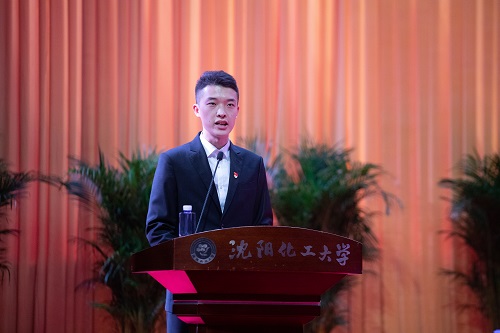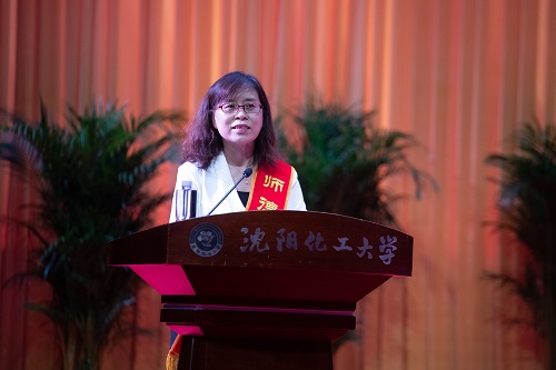 学生代表、经济与管理学院2019级学生陈天钰同学向老师们献词。他代表化大的莘莘学子向为学生辛苦付出、助学生成长成才的老师们献上最真挚的节日问候。他表示,当未来踏出校门那一刻,“强学力行,喻理求真”的校训将会深深刻在每一个化大学子心中,化大老师们渊博的知识、高尚的情操和宽广的胸怀将会时刻鼓舞青年学子向更高的目标迈进,将“化大精神”的种子洒向四方。