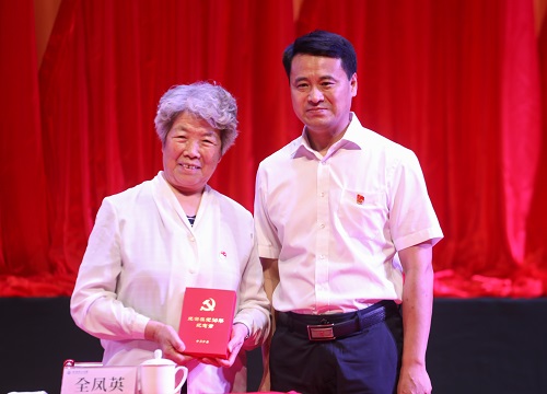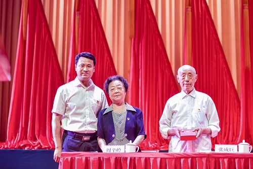 党委书记王强为荣获“光荣在党50年”纪念章的老党员代表张成巨、周辛岭、全凤英颁发了纪念章。“光荣在党50年”纪念章是党中央2021年首次颁发的纪念章,是中国共产党成立100周年系列庆祝活动的重要组成部分。经上级审核批准,万象城有26名老党员获得“光荣在党50年”纪念章。