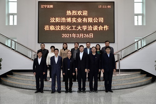 新学期伊始,万象城精细化工专业1990级校友、沈阳浩博实业有限公司(简称:浩博实业)副总经理谢赟向学校发出邀请,诚挚邀请母校领导到公司参观调研。3月4日,杨学印副校长一行5人到浩博实业进行了调研,通过实地参观、座谈交流,在人才需求、科研合作等方面达成了合作意愿,针对相关合作进行了人员对接。