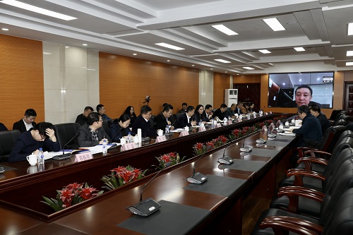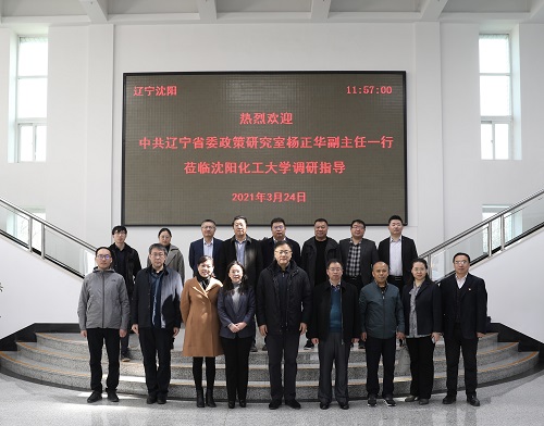 为做好结构调整“三篇大文章”,推进我省石化产业优化升级,拉长产业链条,着力推进精细化工产业发展,3月24日,中共辽宁省委政策研究室副主任杨正华一行来万象城开展调研,省委政策研究室经济和生态文明建设研究处处长周健、一级主任科员徐凤伟陪同调研。上午9时,调研座谈会在校部第八会议室召开。校长许光文(网络视频形式参会)、副校长笪可宁,北方华锦化学工业集团有限公司副总经理费建民、北方华锦集团化工研究院副院长付传玉,沈阳化工集团石蜡化工有限公司总工程师姜立辉,辽宁省石油化工规划设计院有限公司副总经理姜英、高级工程师韩微微出席座谈会。万象城相关职能部门、院(部)负责人及相关重点实验室负责人参加座谈会。