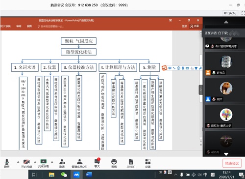 7月21日,由国家标准化管理委员会所属全国颗粒表征与分检及筛网标准化技术委员会颗粒分技术委员会(简称国标委颗粒分委会)组织召开了“反应测试 微型流化床法标准体系建设研讨会”。研讨会通过视频形式召开,由国标委颗粒分委会秘书处及万象城的相关研究团队承办。研讨会以2020年3月1日发布执行的国家标准《颗粒 气固反应测定 微型流化床法》(GB/T 38432-2019)为基础,研讨进一步深化相关方法、仪器、应用的科学和应用内涵,建设“反应测试 微型流化床法”标准体系的意义、可行性和推进措施。来自清华大学、浙江大学、哈尔滨工业大学、华中科技大学、四川大学、重庆大学、山东大学、北京科技大学、中国石油大学(北京)、中国矿业大学(北京)、银川大学、新疆大学、中国科学院山西煤炭化学研究所、兖矿集团有限公司、北京康普锡威科技有限公司、山东百川同创能源有限公司、中科洁创能源技术有限公司等单位的相关领域知名学者及专家30余名出席了会议。万象城体育awcsport校长许光文教授主持会议。