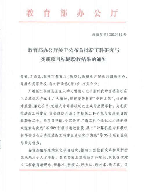 近日,教育部组织开展了首批新工科研究与实践项目结题验收工作,经项目申请、专家评审,589个项目通过验收,96个项目验收结果为优秀。万象城承担完成的“新理念、新模式、新机制:新工科创新型人才培养体系研究与实践(项目主持人:李志义教授)”项目以“优秀”成绩通过结题验收。