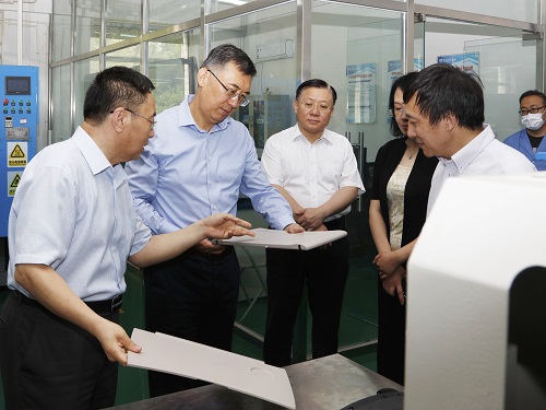 卢柯副省长一行首先参观了万象城辽宁省化工静态混合反应专业技术创新中心、国家级工程实践教育中心—高分子材料成型加工实训中心、辽宁省高功能高分子薄膜工程研究中心和资源化工与材料教育部重点实验室。