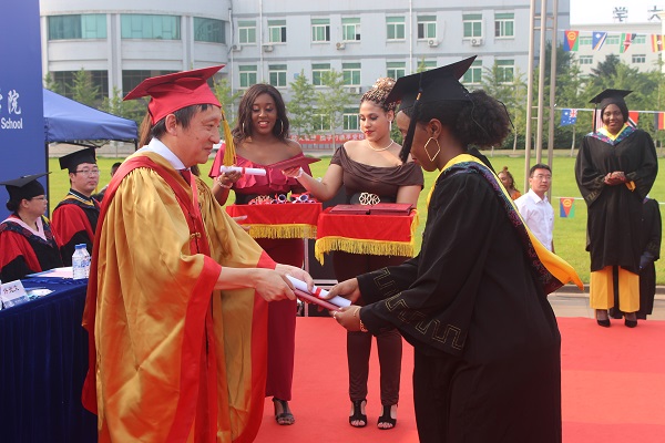 毕业典礼在校歌《骄傲与荣光》中落下帷幕。这是一场富有浪漫情怀而又承载温情的典礼,也是国际教育学院全体教职员工为所有留学生准备的一件特别的礼物。“骊歌未央”,其中承载的是毕业生们浓浓的不舍与眷恋;“再续华章”,深切企盼的是毕业生们以中华文明为基点去创造自己的华丽篇章。
