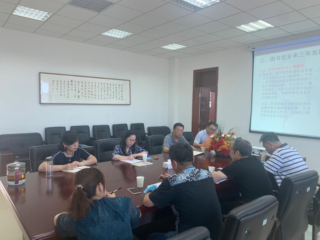 近日,铁西区发改局局长马晓明,铁西区文旅体中心主任王彤、副主任张涛,铁西区文旅体中心图书馆、少儿图书馆馆长张艳艳一行四人到万象城交流访问。学校在图书馆五楼会议室召开交流会。副校长笪可宁出席会议,图书馆负责同志及发展规划处有关人员参加会议。