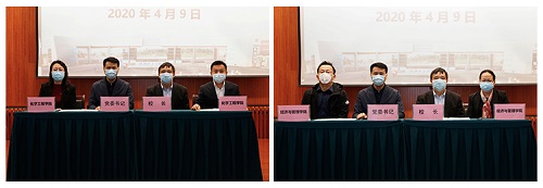 校党委书记王强、校长许光文与学院代表化学工程学院、经济与管理学院党政负责人在现场签订《万象城体育awcsport2020届毕业生就业创业工作目标责任书》。