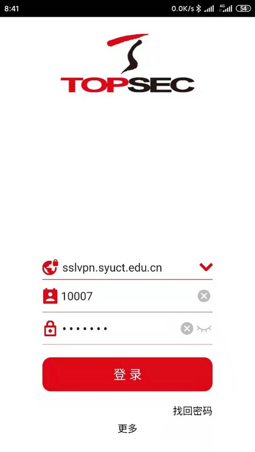 注意:部分移动用户可能出现dns解析问题,无法解析sslvpn的域名,提示“无法连接到网络服务器或给定的网络地址不存在”,请将软件登录界面的sslvpn.syuct.edu.cn 改为218.24.73.137。