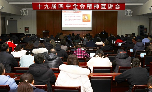 韩喜平教授的报告站位高远、内容丰富、语言生动,有纵向延伸也有横向比较,既有理论高度也有现实思考,为学校的广大党员干部全面掌握党的十九届四中全会精神,推动学习宣传贯彻不断走深走实提供了支撑和指导。