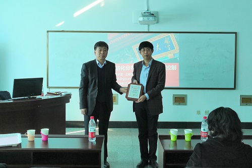 袁德成副校长为李少远教授颁发了“沈化卓越学院讲座教授”聘书,并做总结讲话。他指出李少远教授不仅在预测控制研究领域取得了突出成就,还在学生培养方面投入了大量精力,取得了丰厚成果。李教授精彩的报告给师生带来很大的启示与帮助。袁德成副校长鼓励研究生积极深造,加强与领域内顶级专家的交流,在学科领域作出更大的努力和贡献。