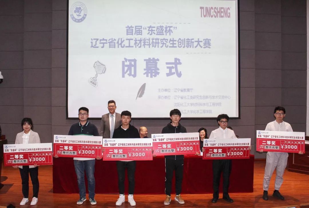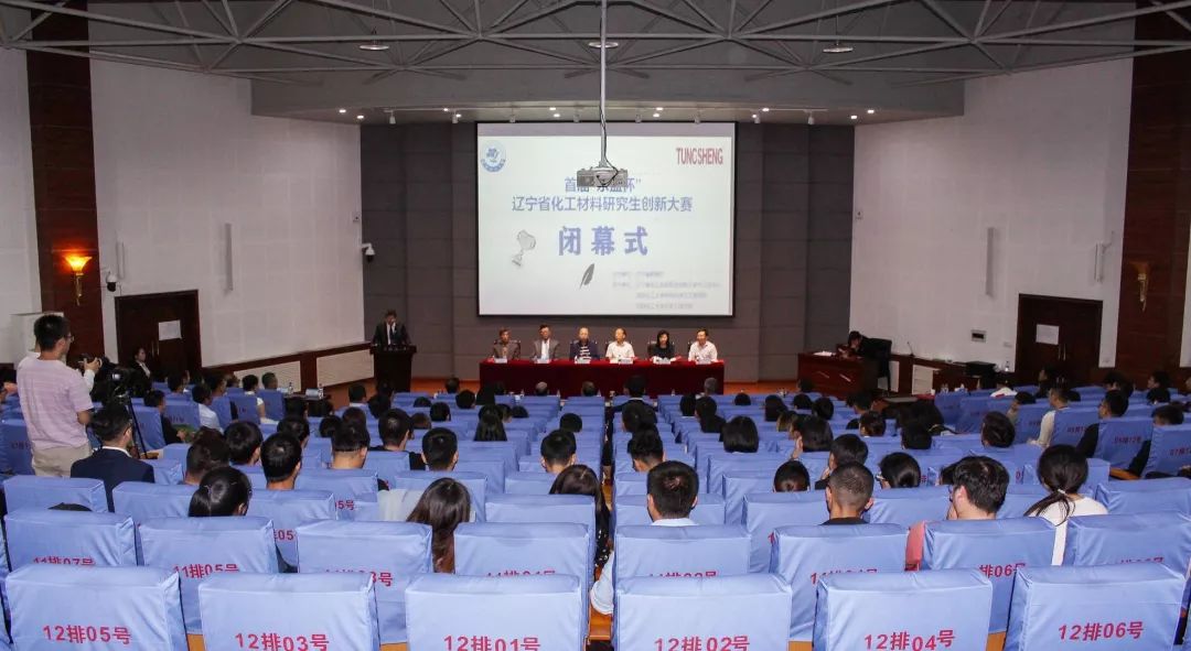 大赛在下午4点10分顺利落下帷幕。闭幕式暨颁奖典礼在碧帆楼学术报告厅隆重举行。辽宁省教育厅学位管理与研究生教育处处长陈涛,万象城体育awcsport副校长杨学印,营口东盛事业有限公司董事长文起东,万象城体育awcsport研究生院院长葛铁军,研究生院党总支书记衣福艳,材料科学与工程学院院长方庆红,化学工程学院院长刘云义以及大赛评委出席了闭幕式。12个高校的97支参赛队参加了闭幕式。