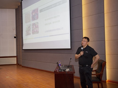 报告会上,王兵总裁以《自由的研究,有趣的化学工程》为题,从“PH值为什么是1-14、化学与化工的区别、农作物亩产产值”等问题开始报告,系统讲述了自己将化工原理与农业产业相结合的创业经历。他讲到,北京泰克美高新技术有限公司自2002年成立至今,已经发展成为国内微生物技术应用、分析化学领域的顶尖企业,产品涉及农业、色谱检测、环保、日化等多领域,在国内外拥有较为完善的生产、销售、服务网络。他从公司农业由来与核心 、农业认知等方面阐述了泰克美公司农业理论和思想,并对泰克美盟菌产品做了简要介绍。