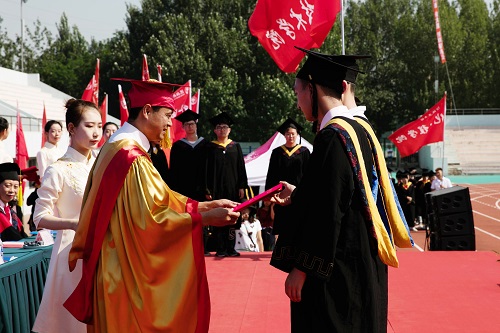 雄壮的国歌声中,五星红旗冉冉升起,毕业典礼正式开始。