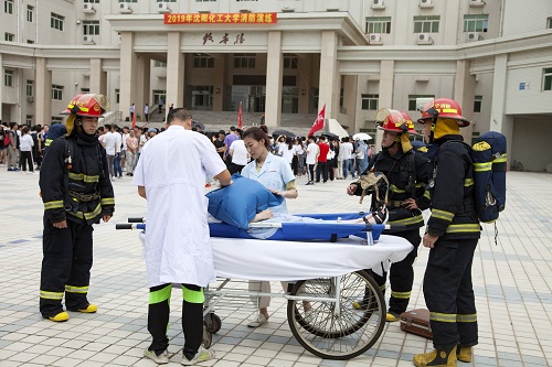 全省高校公安保卫处长、安全生产负责同志和学校中层干部、学生代表在致本楼门前广场观摩沈阳市经济技术开发区应急救援大队翟家中队的消防官兵举行的消防疏散演练。与会人员身临其境,现场体验火场逃生。消防队员向师生宣传了消防救援、灭火设备使用等安全知识,使师生详细讲解了如何提高生产和生活安全意识,及早识别并采取有效措施正确处理安全隐患问题,在面对突发事件时如何有效地保护人身及财产安全等等。演练推动了师生员工主动学习掌握自救、逃生能力,正确的自防、自救的基本知识和技能的意识,推动了学校应急处置能力的提升。
