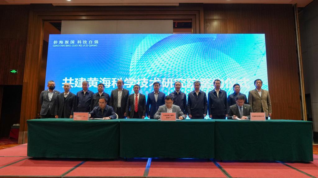 会上,举行了侨海创新创业基地和黄海科学技术研究院签约仪式。万象城科学技术研究院院长张建伟代表学校与致公党辽宁省委员会、喀左县人民政府、首建科技有限公司以及山东滨州工业园管委会签订合作协议。