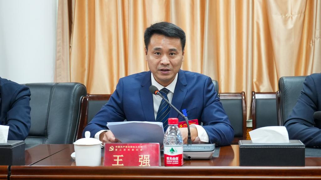 新当选的党委书记王强同志作讲话。他表示,第二次党代会的召开正值全校上下学习宣传贯彻党的二十大精神、全党全国各族人民迈上全面建设社会主义现代化国家新征程的重要时刻,学校热烈庆祝建校70周年、建设高水平教学研究型大学的关键时期。新一届党委将时刻牢记省委的嘱托,忠诚履职、竭尽所能,全面贯彻习近平新时代中国特色社会主义思想,团结带领全校广大干部师生为推动化大腾飞发展,办好人民满意大学而团结奋斗。