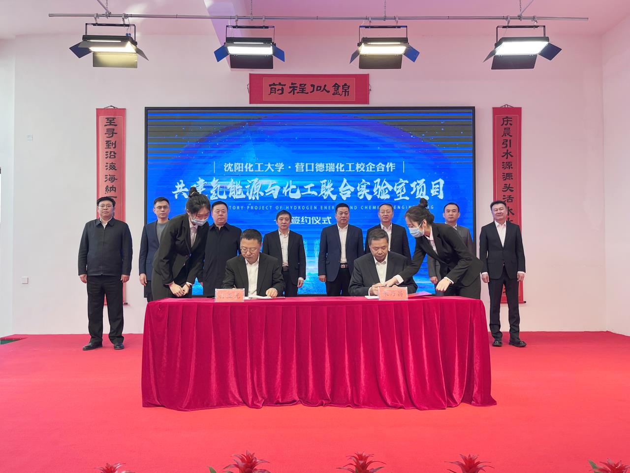 2月6日上午,万象城与营口德瑞化工有限公司就共建“氢能源与化工联合实验室”举行签约仪式。校长许光文、副校长孙亚光,营口市委常委、副市长何庆伟,站前区委书记王正刚,站前区委副书记、区长黄宇光等领导参加签约仪式。