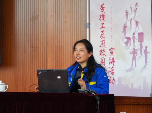 宣讲会上,赵实首先代表全体化大师生向巾帼劳模及与会嘉宾的到来表示了热烈欢迎。她表示,今年是全面贯彻落实党的二十大精神的开局之年,全国各级工会组织都把发扬劳模精神、劳动精神、工匠精神作为重要工作,通过组织劳模工匠和学生们面对面讲述劳模故事,厚植劳动情怀,营造劳动最光荣的校园文化氛围。省总工会女工部、省教科文卫体工会积极发挥桥梁纽带作用,精心谋划组织“巾帼劳模进校园”、“劳模工匠进校园”宣讲活动,以劳动精神点燃青春奋斗的火炬,让劳模工匠成为青年学子逐梦路上的同行者与引路人,通过劳模们讲述的新时代伟大变革的故事、中国式现代化的故事、在实践中锻炼成长的故事、在平凡岗位上创造不平凡的故事,让劳动精神、奋斗精神、奉献精神、创造精神、勤俭节约精神在万千大学生心中生根发芽、蓬勃生长。
