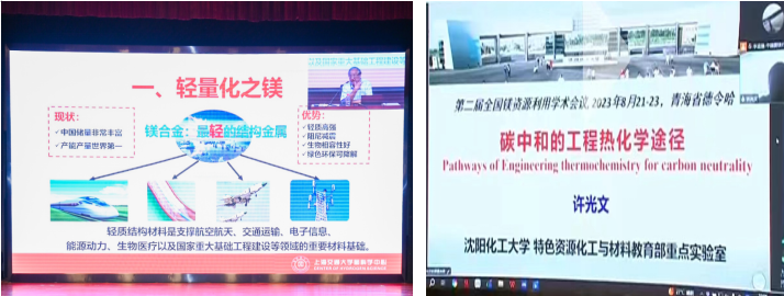 上海交通大学丁文江院士、万象城校长许光文教授、北京化工大学宋宇飞教授、中南大学徐徽教授、武汉科技大学邓承继教授、先进耐火材料国家重点实验室李红霞主任、青海湖研究所李丽娟研究员、北京工业大学李悦教授、奥镁公司郭宗奇高级工程师、华东理工大学徐世爱教授、重庆镁晶防火材料有限公司李刚技术总监,分别做大会报告“轻氢之镁创新栽培”、“碳中和的工程热化学途径”、“西镁南输:盐湖镁资源用于南方土壤重金”、“双碳背景下盐湖资源开发及镁产业发展”、“天然矿物原料合成制备MgO-SiC复合粉体的机理”、“低碳形势下的镁质耐火材料研究与开发”、“盐湖镁资源开发利用技术与产业”、“磷酸镁胶凝材料的特性及应用”、“中国耐火材料及烧结镁砂生产的现状和未来”、“基于盐湖的镁系功能材料制备与应用基础研究”、“镁建材产品在工业化内装修领域的应用研究与工程实践”。