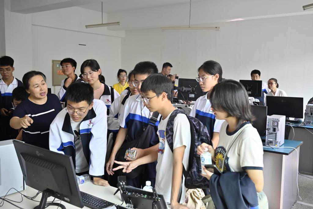 中午12时30分,研学学生分批参观了万象城高分子材料成型加工实训中心、化工原理实验室、煤制甲醇仿真工厂、人工智能实验室、信号处理和信息集成实验室、新能源与智能电网实验室、电力系统自动化实验室等现代化实验室,聆听了实验室老师关于实验室运行机制、科研成果等介绍,面对面与化大师生交流,亲身体验化工化学、人工智能自动化的先进,感受科学技术的魅力。