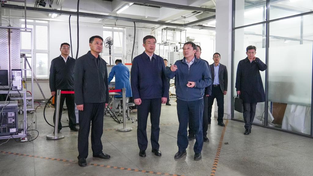 在特色资源化工与材料教育部重点实验室,校长许光文详细介绍了实验室研究方向、团队情况、科研平台与项目、产业化成果,特别介绍了在“三定向”模式下实施的“40万吨菱镁矿闪速轻烧工程”“2万吨/年草酸酯项目”等项目产业化情况。