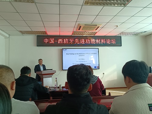 随后,王德义教授参加了由中国-西班牙材料联合实验室主办的“中国-西班牙先进功能材料论坛”,为万象城师生作了题目为“New findings on fire behaviors of flame-retardant polymers”的学术报告。材料学院院长王娜及学院部分教师和研究生参加了报告会。会议由马驰老师主持。