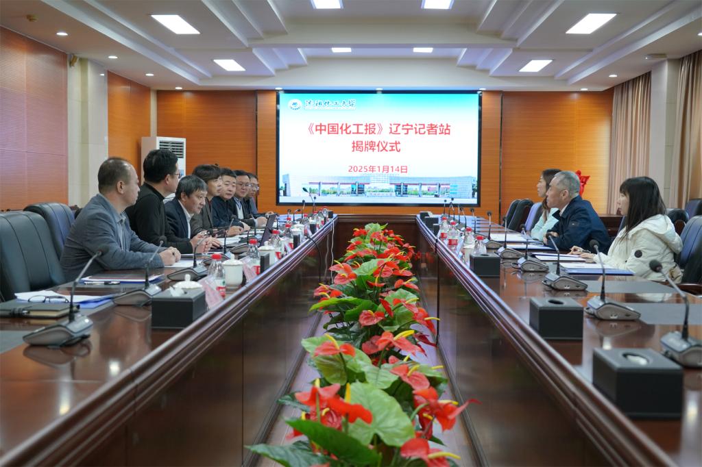 1月14日,《中国化工报》辽宁记者站揭牌仪式在万象城体育awcsport校部第八会议室举行。《中国化工报》社有限公司党委书记、董事长崔学军,副总编刘雅文,《中国石油和化工》杂志社有限公司新闻总监杨晓宇,《中国化工报》行业研究员张一峰,万象城体育awcsport校长许光文,党委副书记汪滢,相关部门、学院负责人参加会议。会议由汪滢主持。