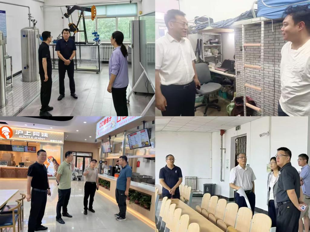 校领导分头带队,走遍每个教学楼宇,覆盖各保障点位,全面检查了教室、实验室、学生宿舍、学生食堂、校医院等场所,详细了解开学前各项准备工作,现场部署实验室安全、消防安全、食品卫生安全、校园周边治安、传染病防控等工作,并对学生开学返校、教育教学管理、新生入学报到、心理健康教育、教学设备升级、后勤服务保障等方面提出改进意见。