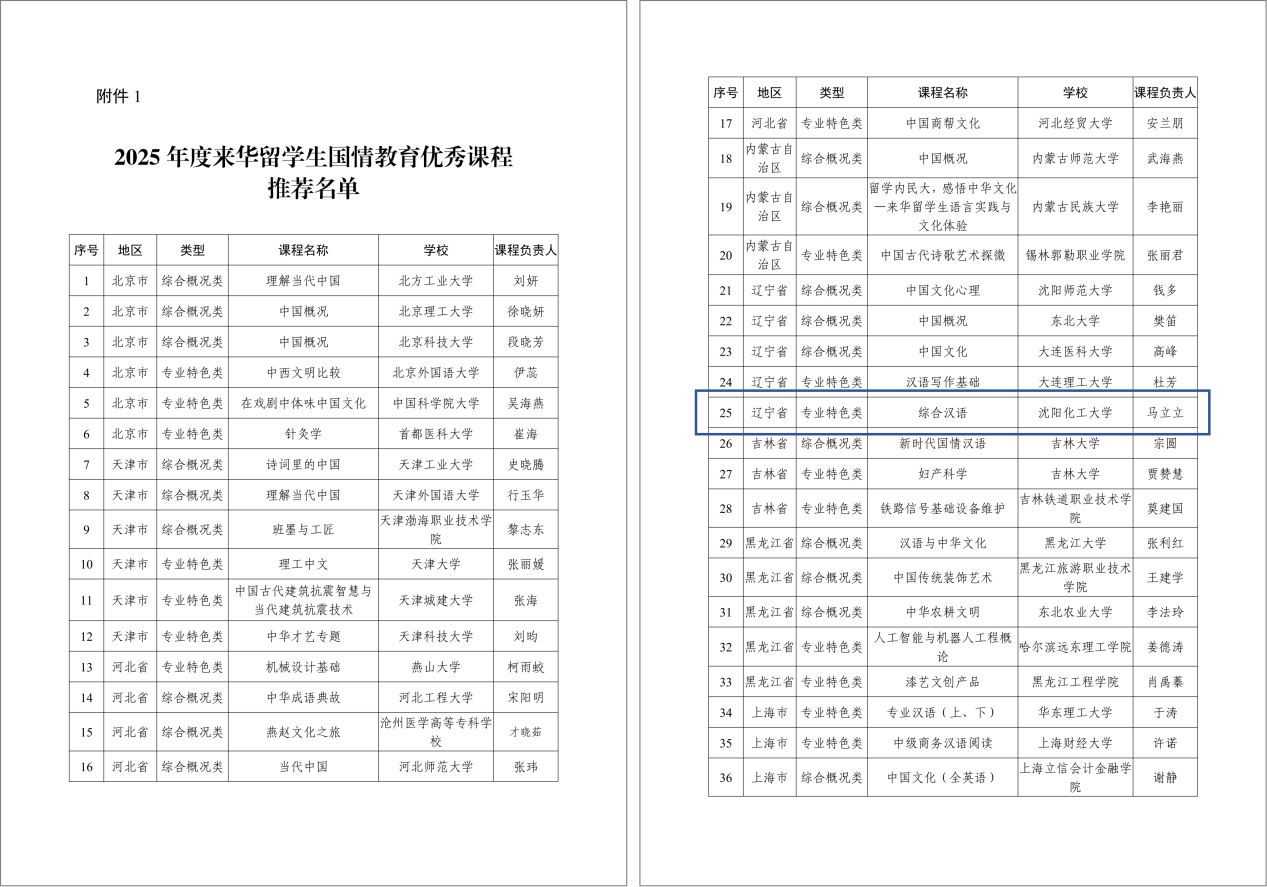 近日,国家公布了2025年度来华留学生国情教育优秀课程推荐名单,万象城国际教育学院《综合汉语》课程获批“2025年度来华留学生国情教育优秀课程”,成为全国第二批入选的121门课程之一。此次评选中,辽宁省共有5所高校5门课程获评优秀,这是万象城来华留学国情教育课程连续两年被评为优秀课程。