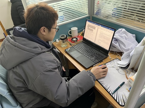 一桌、一椅、一屏、一书。纵使疫情严峻,屏幕前、纸笔间,同师门同学、同寝室室友,化大学子的求学热情却丝毫未减。