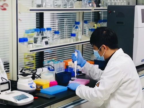 2020年初,疫情暴发,冒着被感染的危险,他带领全体技术研发人员在春节期间全部到岗,三国四地,四天五夜,成功研制出了新冠病毒核酸检测试剂盒,并第一时间捐给卫健部门,填补了全省空白,更为当时的疫情防控工作打了一剂强心针!
