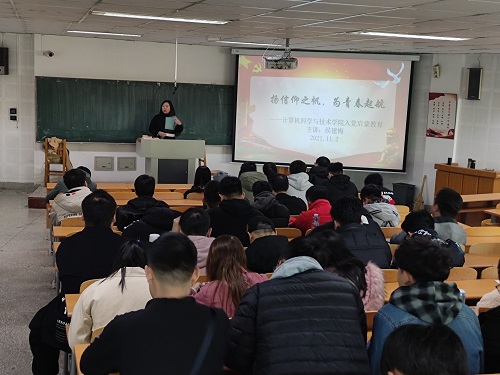 11月2日下午,计算机科学与技术学院党总支在通明楼举办了2021级新生入党启蒙教育讲座。本次讲座由学院组织员侯建梅主讲,2021级全体研究生新生参加此次讲座。
