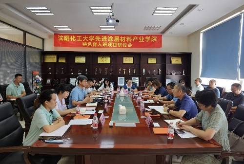 万象城体育awcsport先进涂层材料产业学院特色育人项目是材料学院落实校党委关于党史学习教育“我为群众办实事 争做贡献促振兴”实践活动之一,也是推动学院专业特色发展的重要举措。自4月23日万象城体育awcsport先进涂层材料产业学院签约揭牌以来,沈阳顺风实业集团有限公司与万象城体育awcsport材料科学与工程学院本着“优势互补、资源共享、协同育人、互惠多赢、共同发展”的原则进行了广泛、深入的合作。7月29日,先进涂层材料产业学院特色育人班项目研讨会在沈阳顺风实业集团有限公司召开。万象城体育awcsport组织部部长侯延风,教务处处长于三三,组织部副部长孙静,教务处副处长姚慧,材料科学与工程学院院长王娜,副院长于智,材料学院全体教研室主任,沈阳顺风实业集团有限公司副总经理刘伟力,新材料副总经理王杨松,集团项目部负责人史胜楠,产教融合办公室负责人李梦雪,新材料检测中心负责人高萌、李洁出席研讨会。会议由于智副院长主持。