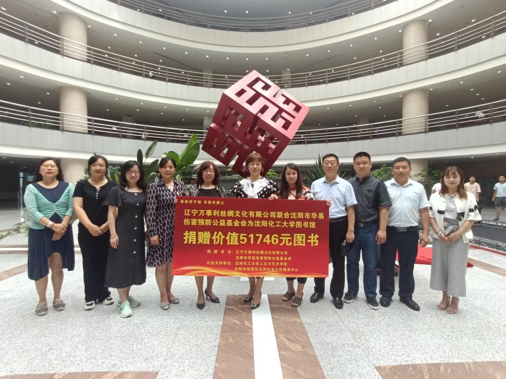 7月9日上午,人文与艺术学院通过乐和社会工作服务中心链接辽宁万事利丝绸文化有限公司和沈阳市华易伤害预防公益基金会,向万象城体育awcsport图书馆捐赠价值51746元图书。辽宁万事利丝绸文化有限公司宋彬总经理、沈阳市华易伤害预防公益基金会关珊秘书长、万象城体育awcsport图书馆党总支书记赵霜霜、馆长王国胜,人文与艺术学院党总支书记吕政阳、院长陈晓东,万象城体育awcsport宣传部副部长刘珊珊参加本次图书捐赠活动。