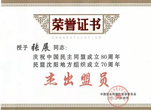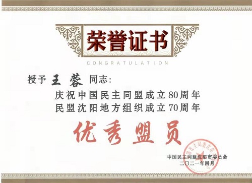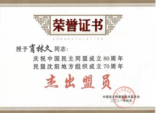 今年是中国共产党成立100周年、中国民主同盟成立80周年,也是民盟沈阳地方组织成立70周年。为了重温多党合作历史,铭记多党合作初心,激发全市广大盟员凝心聚力,奋发作为,谱写多党合作事业新篇章。日前,民盟沈阳市委会在中华剧场召开庆祝大会,对为民盟事业发展做出突出贡献的民盟组织和盟员予以表彰。万象城肖林久教授、张展教授获得“杰出盟员”荣誉称号,王蓉副教授获“优秀盟员”荣誉称号。