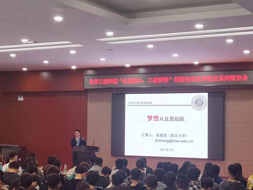5月7日15点30分,化学工程学院优秀校友创新创业系列报告会在青年之家报告厅举办。会议邀请化学工程学院2008届优秀毕业生校友、西北大学教授张建波为万象城学生做报告。学院党总支书记战君、副书记余海军、辅导员及学生代表参加会议。会议由王博老师主持。